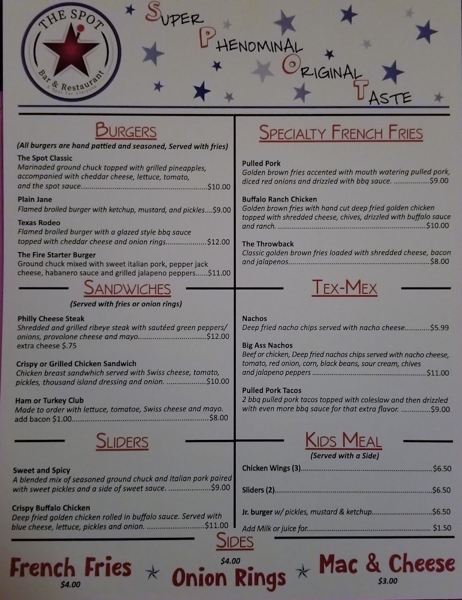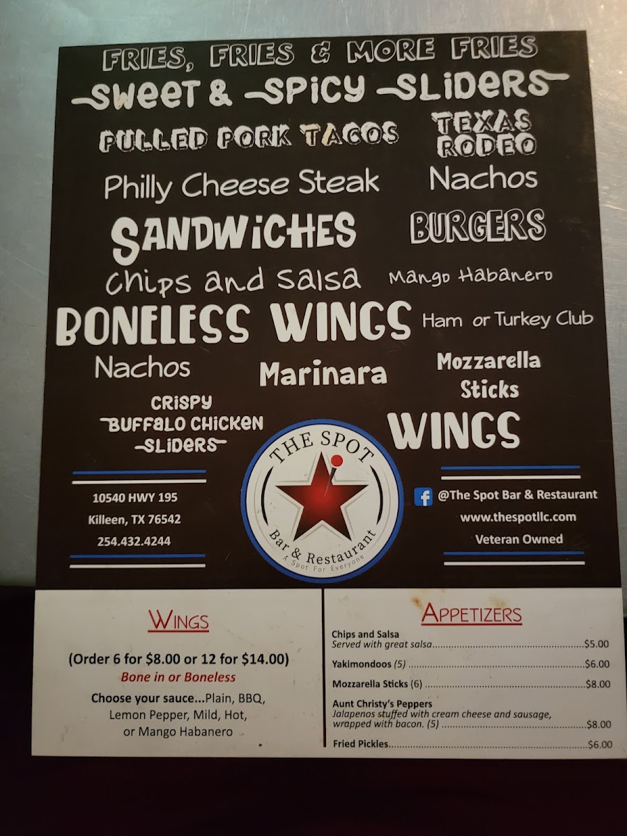 Welcome to The Spot Bar & Restaurant, a vibrant haven located at 10540 South Fort Hood Street, Killeen, TX. This culinary gem is renowned for its mouthwatering burgers that tantalize the taste buds. Highlights include the Spot Classic, featuring grilled pineapple and cheddar cheese, and the Texas Rodeo, adorned with BBQ sauce and onion rings. All items are affordably priced, with burgers ranging from $9 to $12.
